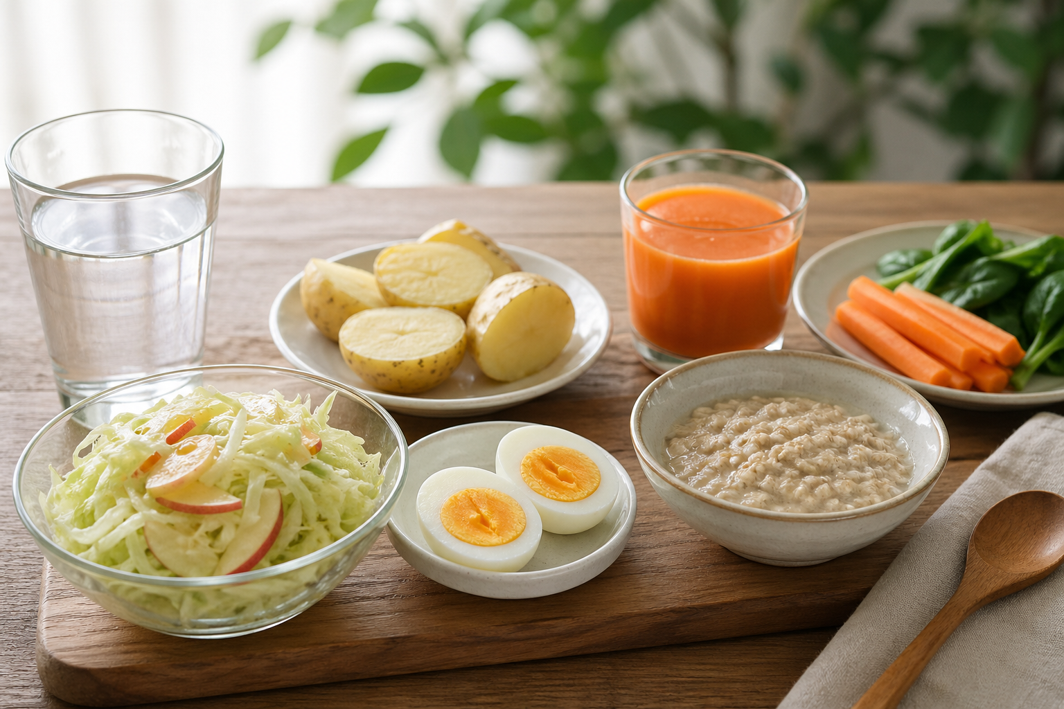 당근의 경우, 생으로 먹는 것보다 살짝 삶아서 기름과 함께 섭취하면 베타카로틴(β-Carotene) 흡수율이 80%까지 높아진다고 알려져 있습니다. 베타카로틴이란 체내에서 비타민 A로 전환되는 항산화 물질로, 면역 체계 유지와 눈 건강에 핵심적인 역할을 합니다(출처: 식품의약품안전처). 당근과 사과를 함께 갈아서 주스로 마시면 공복에 부담 없이 흡수할 수 있어, 전날 삶아 둔 계란 하나와 함께 먹으면 충분한 아침이 됩니다.